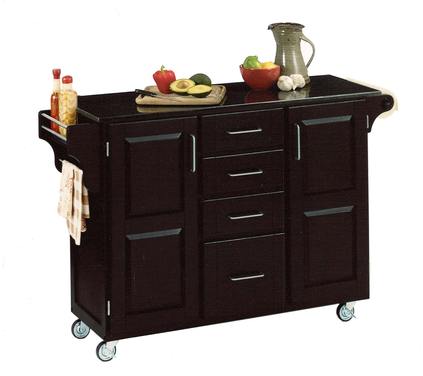 Create a stylish statement with the Create-a-Cart Kitchen Cart by homestyles. This versatile kitchen cart features a handsome black finish and a black granite surface, which is ideal for preparing and serving meals. Great for a craft room too. Constructed of premium-level, solid wood.Read More